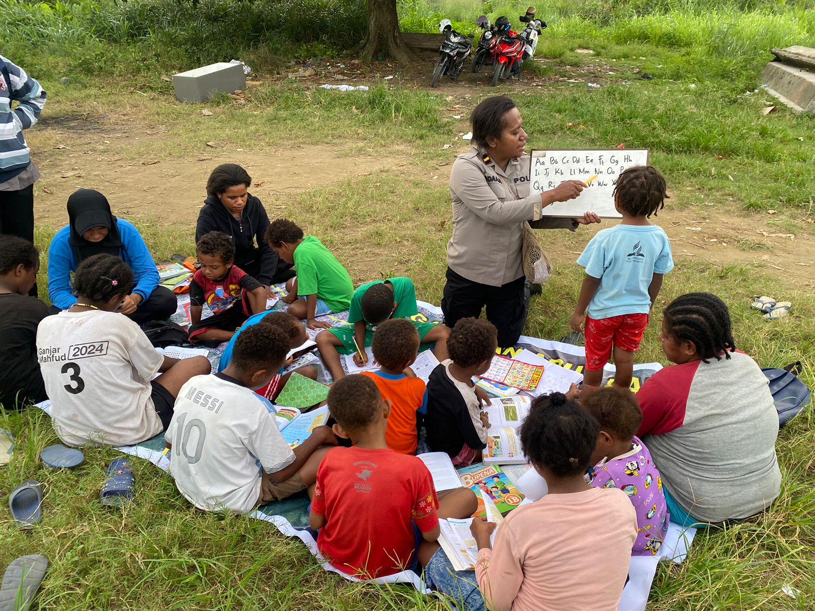 Kapolres Jayapura AKBP Fredrickus W.A Maclarimboen, S.I.K., M.H melalui Ipda Oda Marian menjelaskan melalui sarana atau program gerakan baca tulis (gabus) ia secara konsiten dan rutin menemui peserta didiknya melanjutkan apa yang sudah diajarkan sebelumnya.