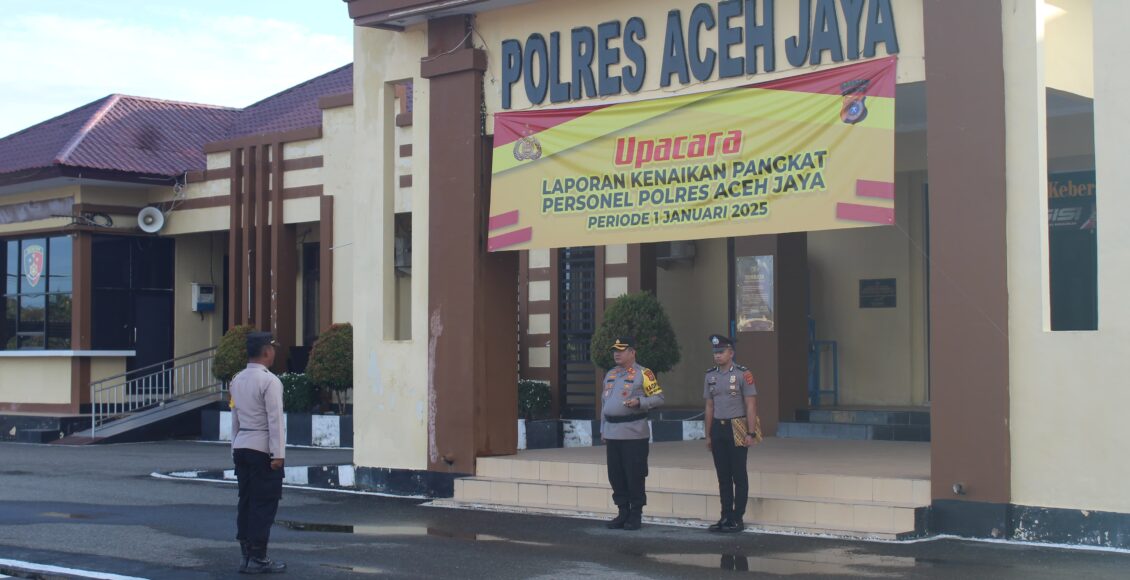 Calang,ikagawanews.id –  Sebanyak 22 personel Polres Aceh Jaya menerima kenaikan pangkat dalam upacara resmi yang digelar pada Kamis, 2 Januari 2025, pukul 08.00 WIB, bertempat di halaman Mapolres Aceh Jaya, Dusun Kuala Meurisi, Desa Keutapang, Kecamatan Krueng Sabee, Kabupaten Aceh Jaya.