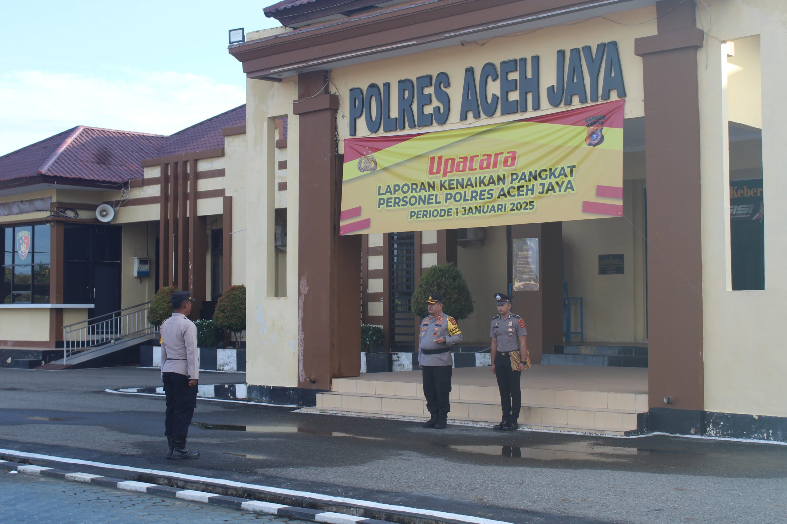 Upacara dimulai dengan persiapan pasukan yang berjalan tertib, diikuti laporan komandan upacara kepada inspektur upacara, dan penghormatan kepada bendera. Dalam amanatnya, Kapolres Aceh Jaya menekankan bahwa kenaikan pangkat ini adalah wujud penghargaan atas kerja keras, dedikasi, dan profesionalisme para personel dalam menjalankan tugas.