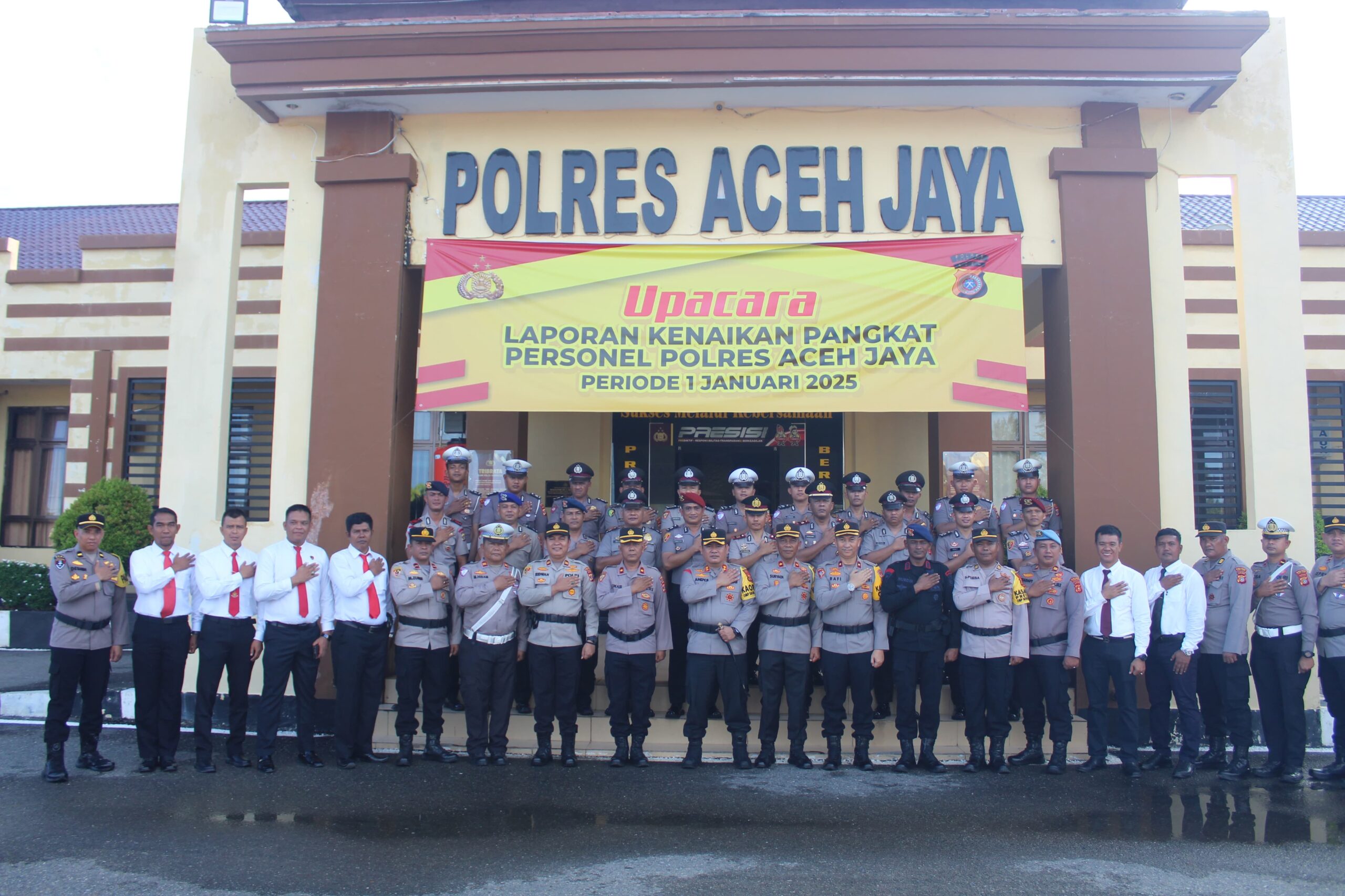 22 Personel Polres Aceh Jaya Terima Kenaikan Pangkat pada Upacara Laporan Kenaikan Pangkat Periode 1 Januari 2025