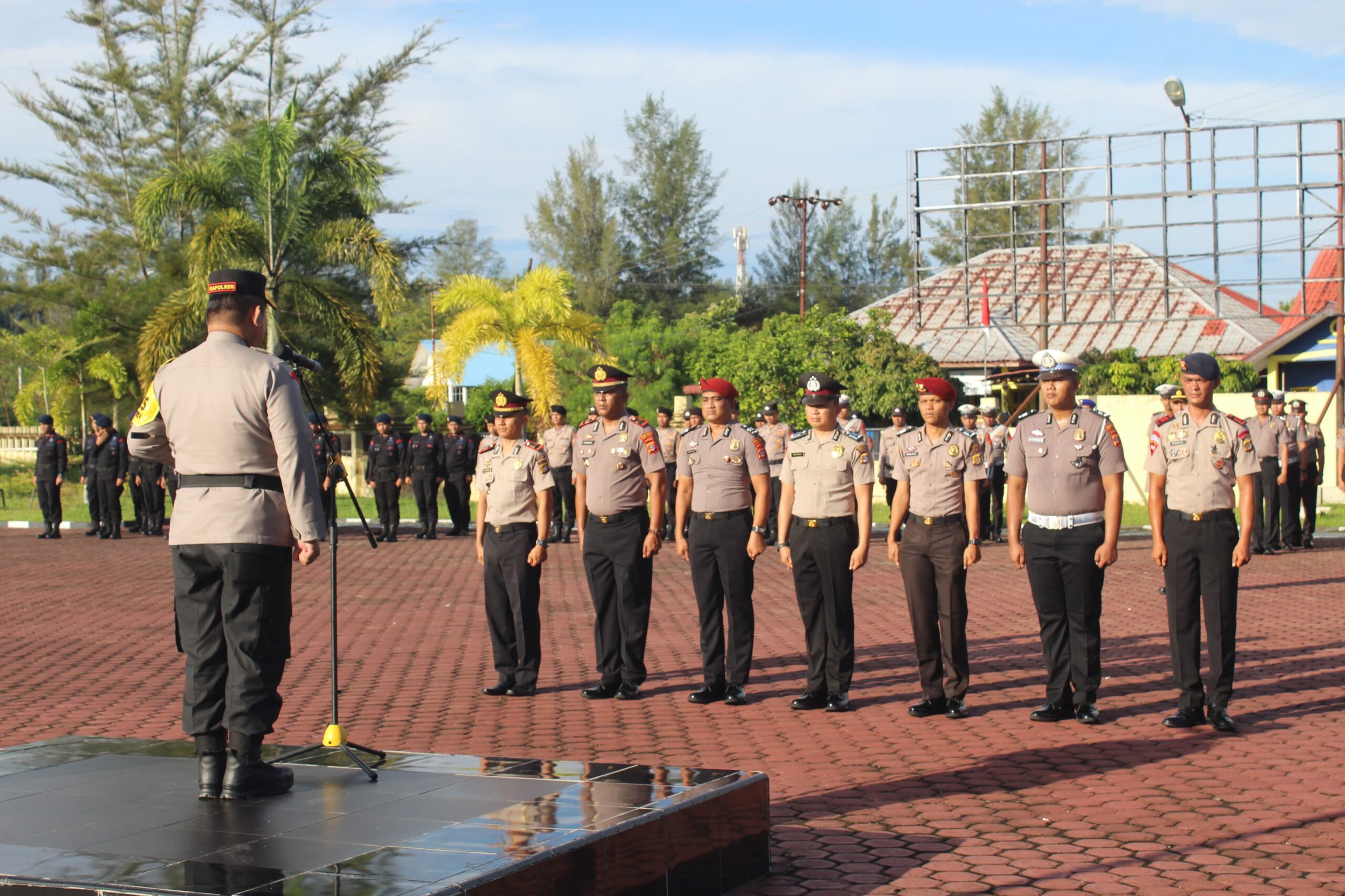 Kegiatan tersebut dipimpin langsung oleh Kapolres Aceh Jaya, AKBP Andy Sumarta, S.I.K., dan dihadiri oleh Wakapolres Aceh Jaya, para pejabat utama (PJU) Polres Aceh Jaya, Danki 4 Batalyon A Pelopor Satbrimob, serta seluruh peleton dari berbagai satuan di lingkungan Polres Aceh Jaya.