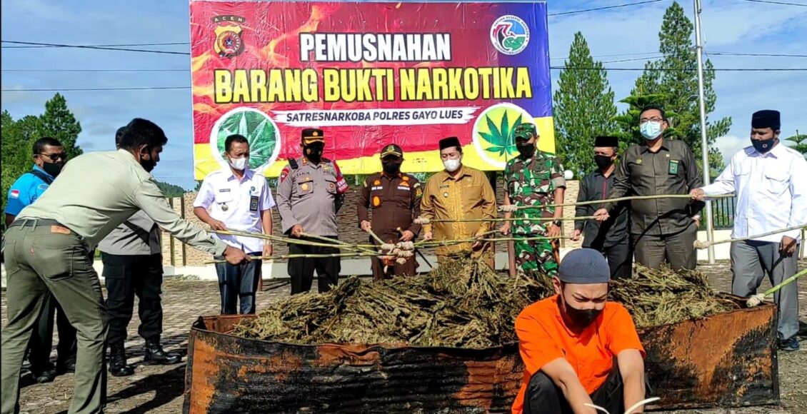 Barang bukti Narkotika yang dimusnahkan adalah jenis Ganja dengan berat +- 60 Kg dari hasil tindak pidana penyalahgunaan Narkotika yang terjadi pada hari Selasa tanggal 07 Desember 2022 di Desa Cane Toa Kecamatan Rikit Gaib Kabupaten Gayo Lues atas nama terssangka IA Bin S (22) warga Suka Makmur Kecamatan Kejuruan Muda Kabupaten Aceh Tamiang.