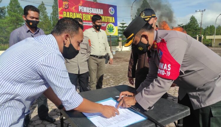 Barang Bukti Ganja tersebut di musnahkan dengan cara di bakar dan selanjutnya di buatkan berita acara pemusnahan barang bukti untuk proses penyidikan lebih lanjut .