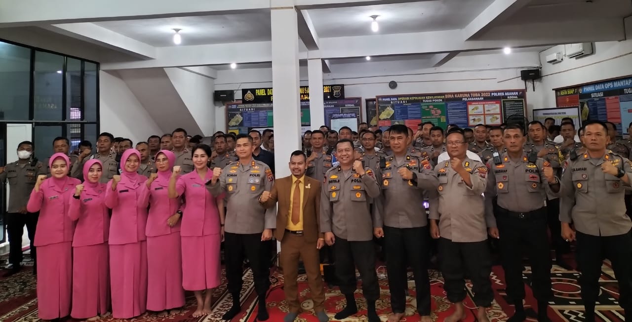 “kami menggelar acara motivasi ini untuk merefresh, me-recharge dan menyambungkan kabel-kabel hati anggota yang terputus mengantisipasi banyaknya pelanggaran” kata Kapolres Asahan di Aula Wira Satya Polres Asahan, selasa, (16/11)