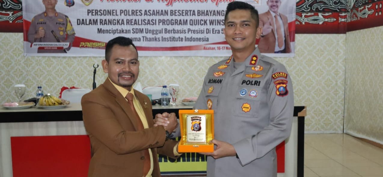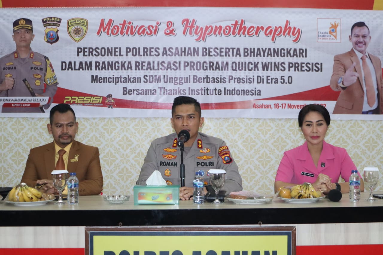 Kapolres Asahan AKBP Roman S. Elhaj, S.IK.SH. M.Si menggagas giat Quick Wins Presisi tersebut dengan giat Motivasi dan Hypnotheraphy agar lebih berbeda dan mengena di hati.