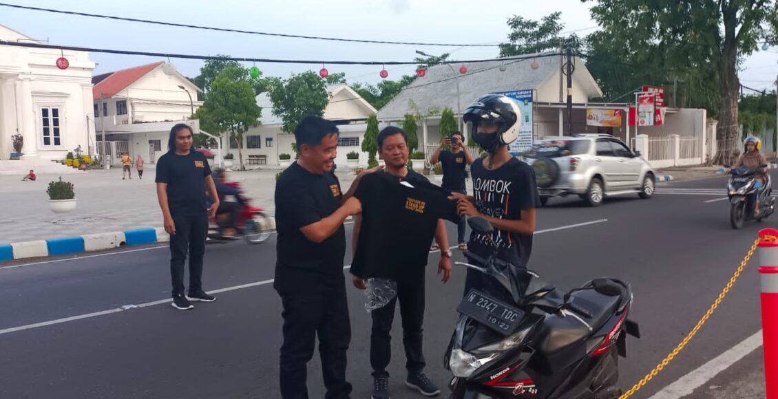 Ajak Masyarakat Perangi Narkotika,Satresnarkoba Polres Pasuruan Kota Berbagi Kaos HANI untuk Warga