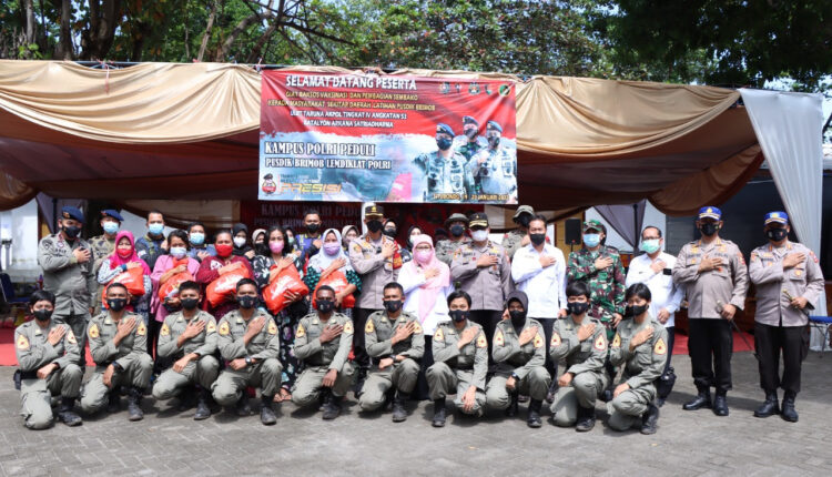 SITUBONDO,ikagawanews.id – Kapolres Situbondo AKBP Dr. Andi Sinjaya, S.H., S.I.K., M.H. bersama Forkopimda Situbondo mendampingi Tim Pusdik Brimob Lemdiklat Polri dalam rangka bakti sosial vaksinasi berupa pembagian sembako kepada masyarakat di Kawasan Wisata Bahari Pasir Putih Situbondo, Rabu (19/1/2022)