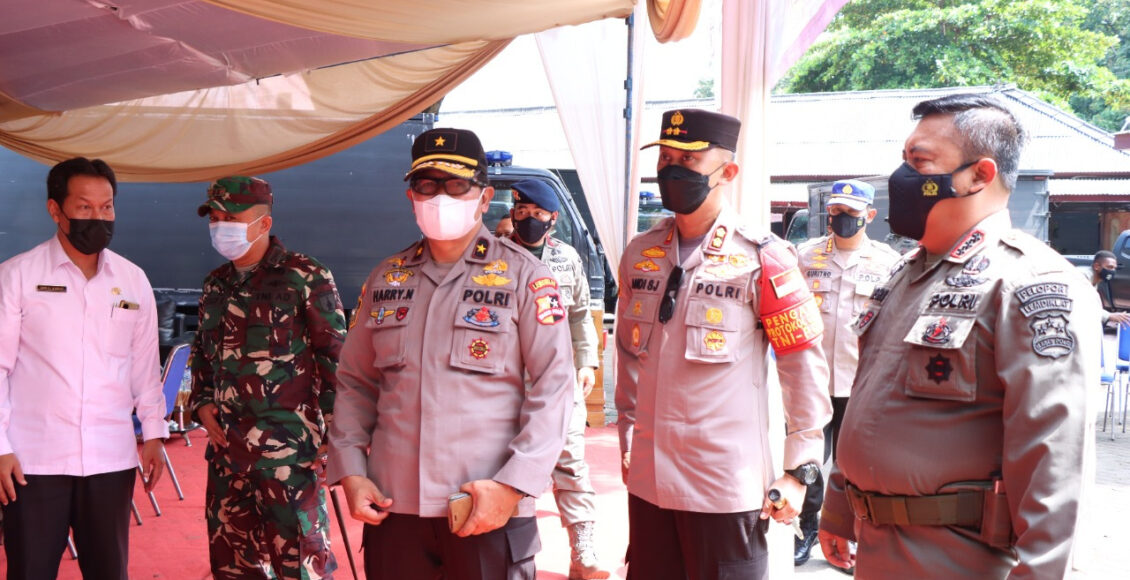 SITUBONDO,ikagawanews.id – Kapolres Situbondo AKBP Dr. Andi Sinjaya, S.H., S.I.K., M.H. bersama Forkopimda Situbondo mendampingi Tim Pusdik Brimob Lemdiklat Polri dalam rangka bakti sosial vaksinasi berupa pembagian sembako kepada masyarakat di Kawasan Wisata Bahari Pasir Putih Situbondo, Rabu (19/1/2022)