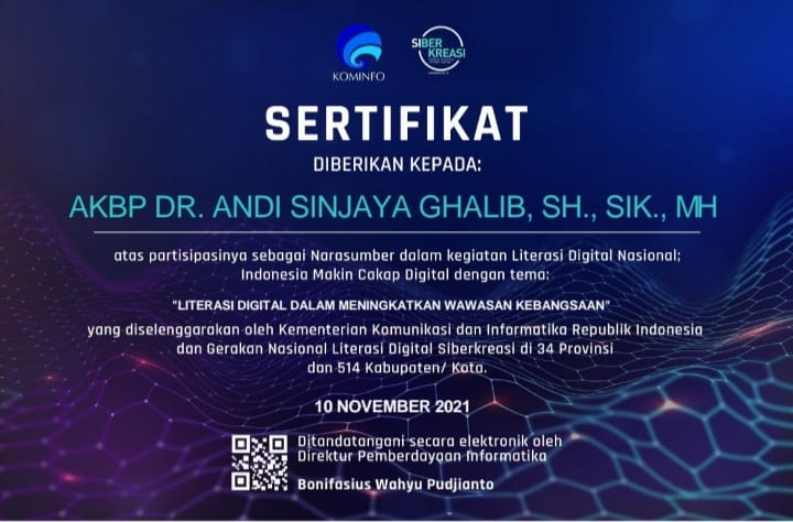 AKBP Andi Sinjaya menjadi Pembicara Spesial Hari Pahlawan tentang Literasi Digital Program Kemenkominfo