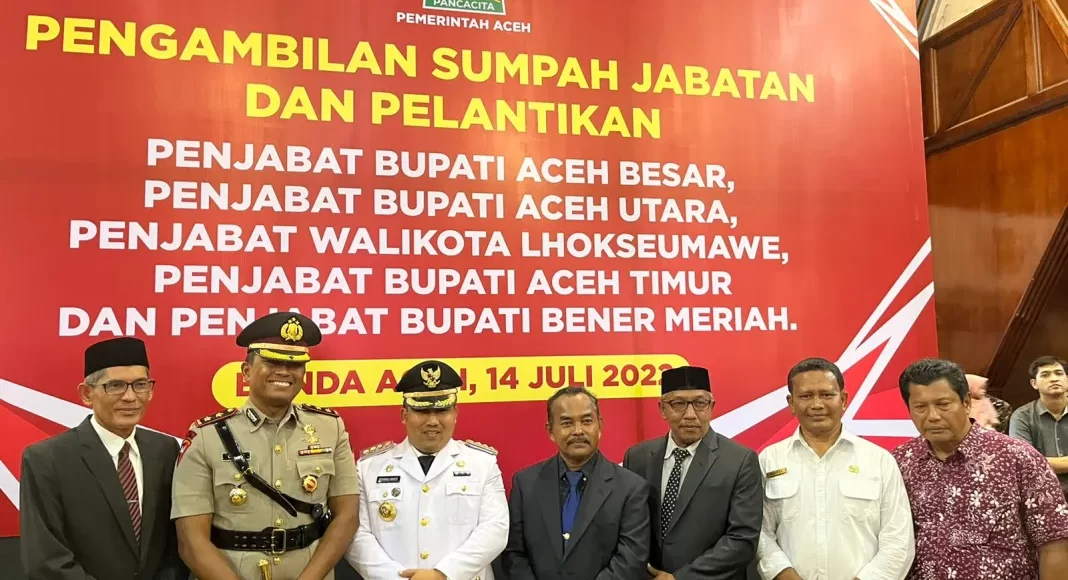 Penjabat Gubernur Aceh pada kesempatan tersebut menyampaikan sambutan, yakni Atas rahmat dan Taufik Nya maka pada hari ini Kamis tanggal 14 Juli 2022 kami pejabat Gubernur Aceh atas nama Presiden Republik Indonesia dengan resmi melantik :