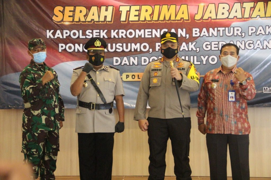 Sedangkan untuk, Kapolsek Poncokusumo sebelumnya dijabat oleh AKP Moch. Lutfi, S.H., M.Si (Pejabat lama) dan saat ini sudah berganti dengan pejabat yang baru AKP Sumarsono. (e). Kapolsek Pagak sebelumnya dijabat oleh AKP Sumarsono (Pejabat lama), dan sekarang digantikan AKP Didik Suhardi, S.H. (pejabat baru). (f). Kapolsek Gedangan sebelumnya dijabat oleh AKP Didik Suhardi, S.H. (Pejabat lama). Dan mulai dari sekarang digantikan Iptu Yoyok Supandi, S.H. (pejabat baru). (g). Kapolsek Donomulyo AKP (Pejabat lama) digantikan AKP (pejabat baru).