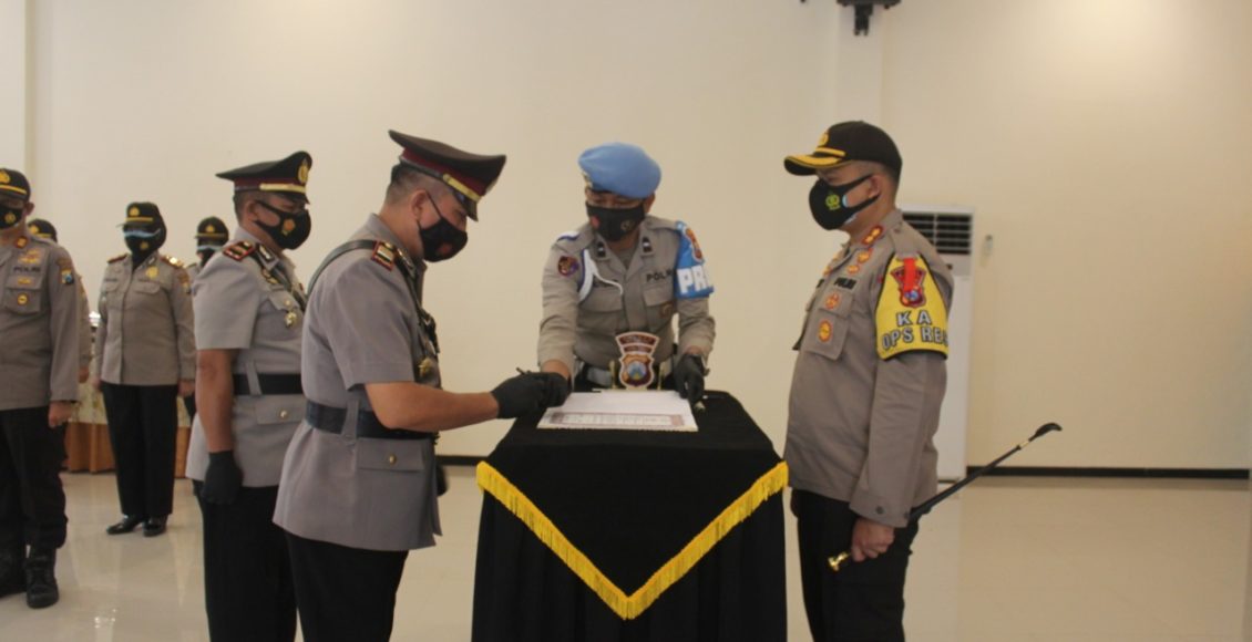 Diungkapkan, adapun Pejabat yang telah melaksanakan Serah Terima jabatan antara lain : (a). Kompol Hari Subagiyo, S.H., M.H. NRP 68100017 Jabatan Lama Kapolsek Lawang Polres Malang Jabatan Baru Kabagops Polres Batu. (b). AKP Hartono, S.Sos. NRP 66090317 Jabatan Lama Kapolsek Sumbermanjing Wetan Polres Malang Jabatan Baru Kapolsek Lawang Polres Malang. (c). Iptu Mashudianto, S.H., M.H. NRP 64070646 Ps. Kasubbaghukum Bagsumda Polres Malang Jabatan Baru Kapolsek Sumbermanjing Wetan Polres Malang.