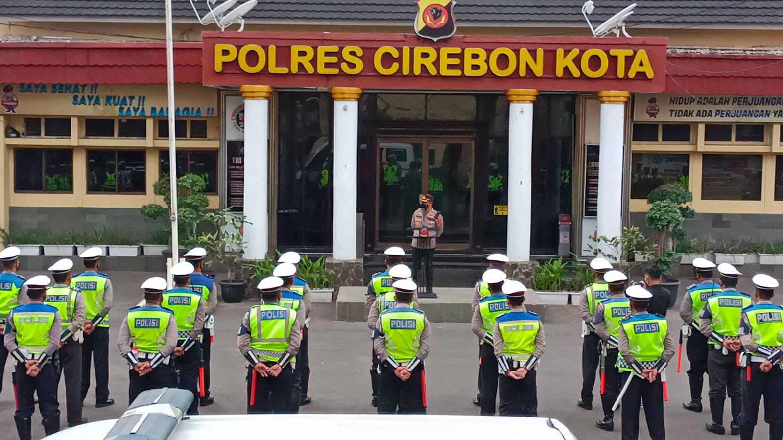 Hadir dalam giat apel jam pimpinan Fungsi Sat Lantas Polres Cirebon Kota di halaman mako Polres Cirebon Kota dipimpin oleh Kapolres Cirebon Kota AKBP M. FAHRI SIREGAR, SH, S.Ik, MH, dan diikuti oleh Kasat Lantas Polres Cirebon Kota AKP LAODE HABIBI ADE JAMA, S.IK, M.H., KBO Sat Lantas IPTU JONI, S.H., Kanit Regident Sat Lantas Polres Cirebon Kota IPTU RIKI KUSTIAWAN, S.Ip., Kanit Turjawali IPDA SUDRAJAT., Kanit Dikyasa Sat Lantas Polres Cirebon Kota IPDA DEDI.,dan Personil Sat Lantas Polres Cirebon Kota.