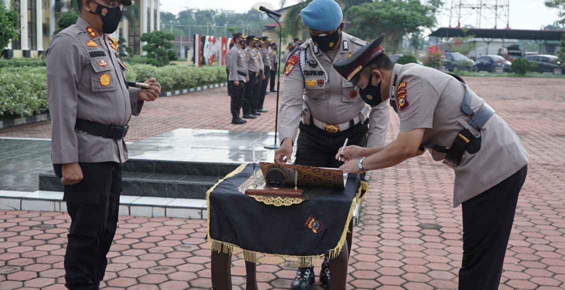 “Kepada para pejabat yang baru melaksanakan serah terima jabatan diharapkan agar lebih siap dalam menghadapi berbagai tantangan tugas terutama yang berkaitan dengan masyarakat luas, persiapkan diri,fisik dan mental serta tingkatkan kewaspadaan dengan mengedepankan polri yang humanis.” Kata Kapolres dalam amanatnya.