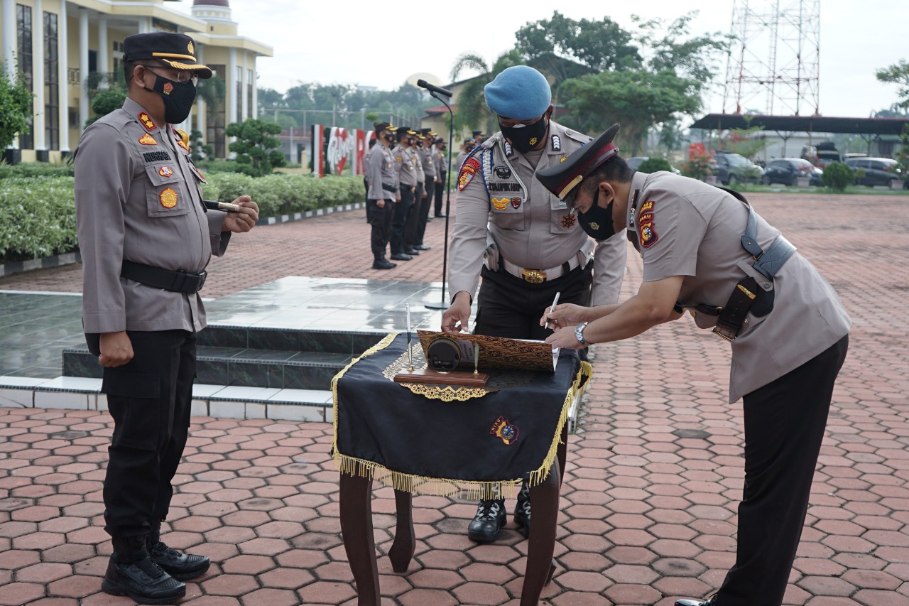 Pada kesempatan ini, Kapolres memerintahkan kepada seluruh personil untuk tetap tingkatkan disiplin dan tetap berikan perlindungan, pengayoman kepada masyarakat secara mudah, tanggap/progesif serta tidak diskriminatif. Tegakkan Hukum secara profesional dan objektif,transparan dan akuntabel.