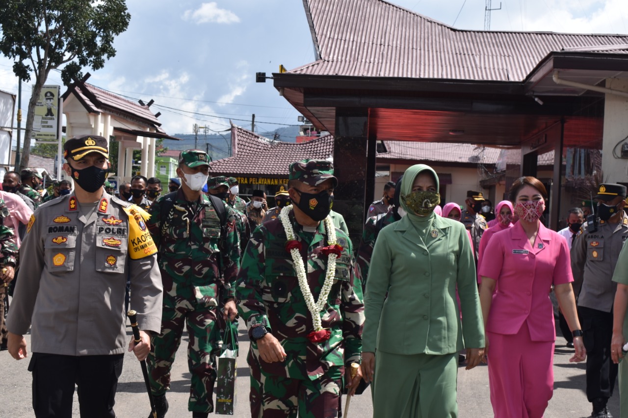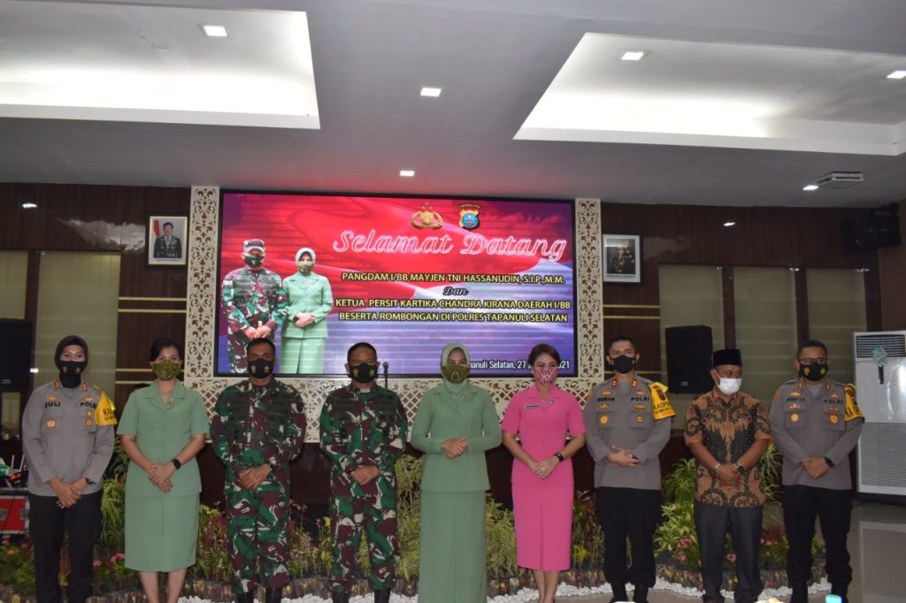 Pangdam I/BB dan Ketua Persit KCK Daerah I/BB beserta Rombongan sampai di Mako Polres Tapanuli Selatan (Tapsel) sekira pukul 14.00 WIB, dan langsung disambut oleh Kapolres Tapsel.