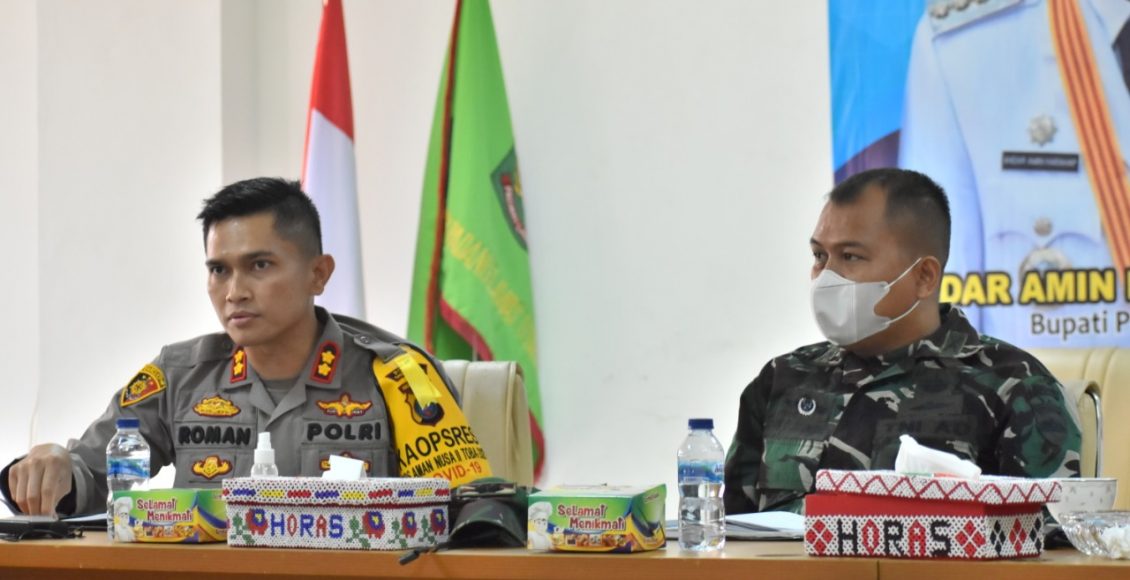 AKBP Roman Smaradhana Elhaj Mengikuti Daring Di Ruang Rapat kantor Bupati Tapsel