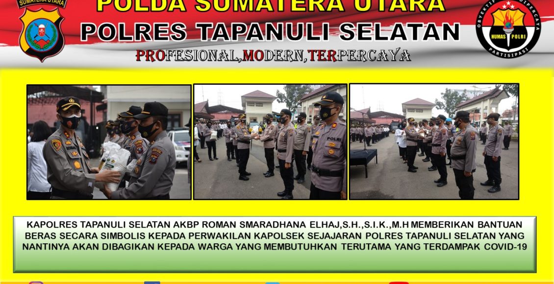 Lalu, Kapolres Tapanuli Selatan menyerahkan secara simbolis bantuan beras kepada perwakilan Kapolsek yang telah ditunjuk.
