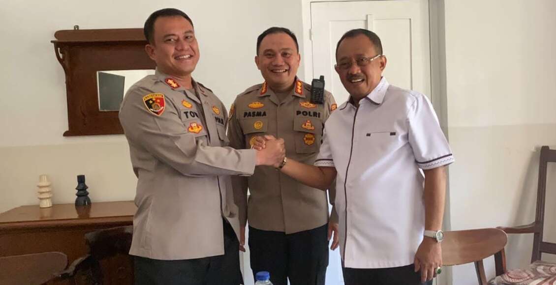 Didampingi Kapolrestabes Surabaya Kombes Pol Pasma Royce, keduanya saling mengobrol dan bersantai dengan saling melempar senyum saat ngopi bersama.