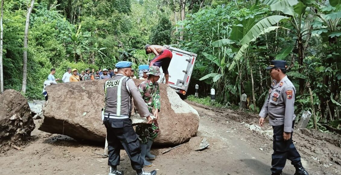 “Dengan kerja sama semua pihak, batu besar yang menutup akses akhirnya berhasil dipindahkan dan arus lalu lintas kembali normal,” ujar Iptu Darminto mewakili Kapolres Kebumen AKBP menjelaskan kondisi pasca evakuasi longsor.