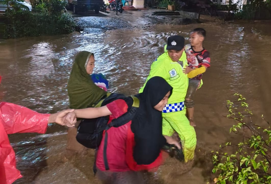 Aksi Heroik Aipda Haristian, S.H. Sat Binmas Polres Aceh Tenggara Bantu Evakuasi Warga Terdampak Banjir