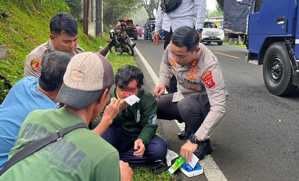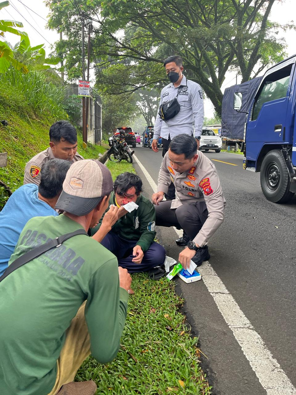 Aksi Humanis, Kapolres Cianjur Bantu Dan Evakuasi Korban Laka Lantas Tunggal