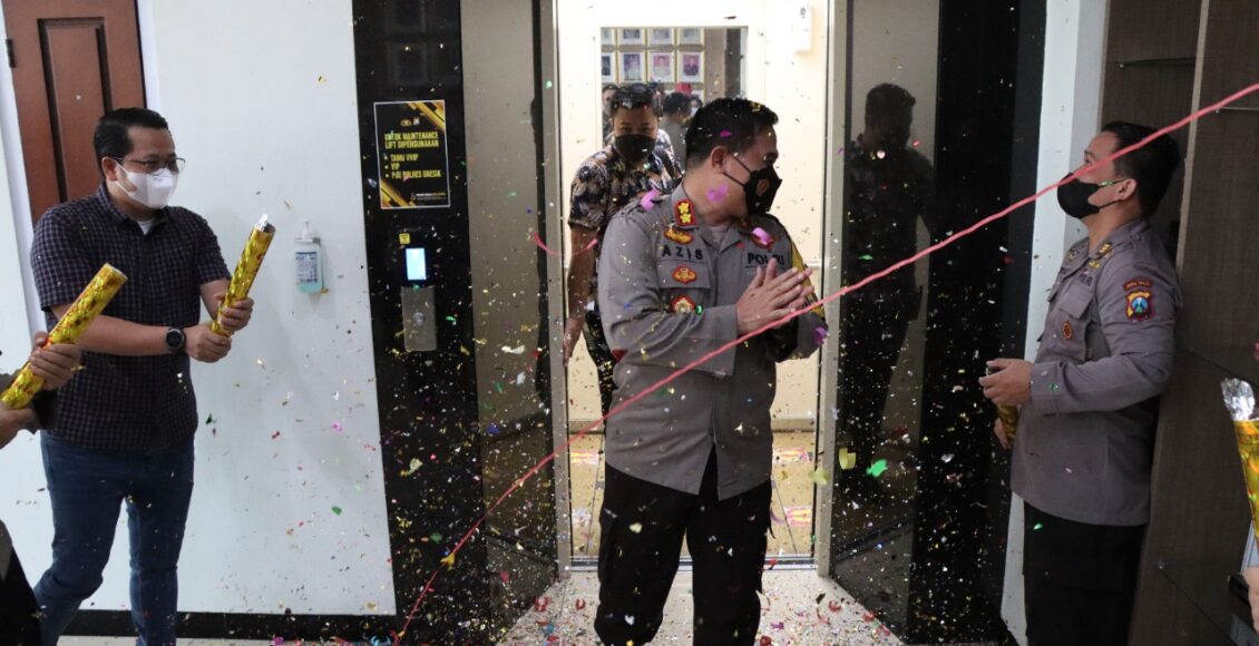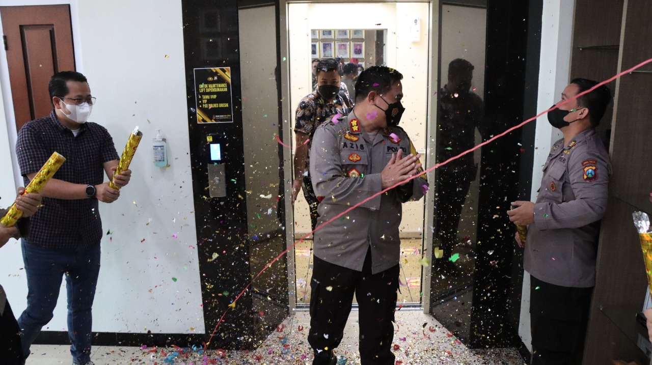 Kejutan diberikan Wakapolres Gresik Kompol Ari Galang beserta PJU di depan lift. Para personel berkumpul untuk mengucapkan Selamat Ulang Tahun kepada Kapolres Gresik.