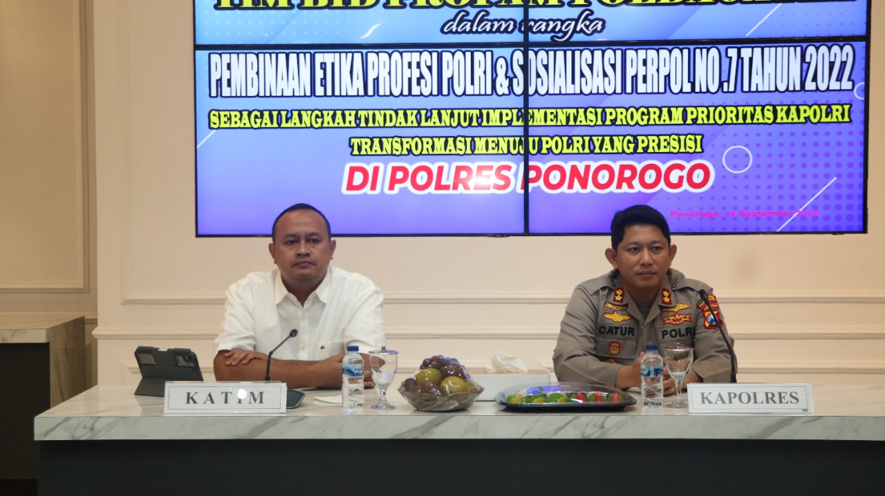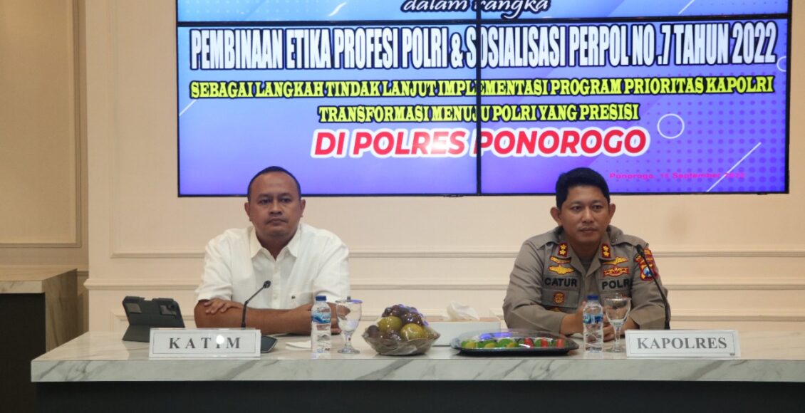 PONOROGO,ikagawanews.id  – Sebanyak Sebanyak 100 personel Polres Ponorogo dan Polsek jajaran  yang terdiri dari perwakilan Perwira, Bintara dan ASN dari seluruh fungsi mengikuti Pembinaan Etika Profesi Polri Semester II T.A. 2022 yang digelar oleh Bidpropam Polda Jatim bertempat di Aula Wengker Polres Ponorogo, Kamis (15/09/2022).