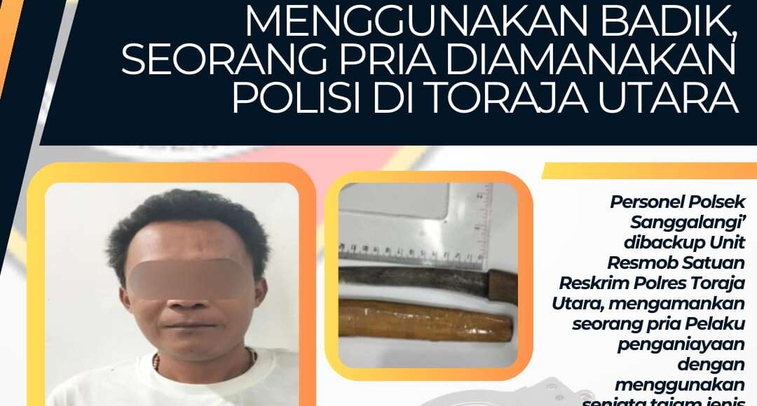 Saat dikonfirmasi, Kapolres Toraja Utara AKBP Zulanda, S.IK.,M.Si melalui Kasat Reskrim AKP Aris Saidy, SH membenarkan hal tersebut, pihaknya telah berhasil mengamanakan seorang pria pelaku penganiayaan terhadap 2 korban dengan menggunakan senjata tajam jenis badik.