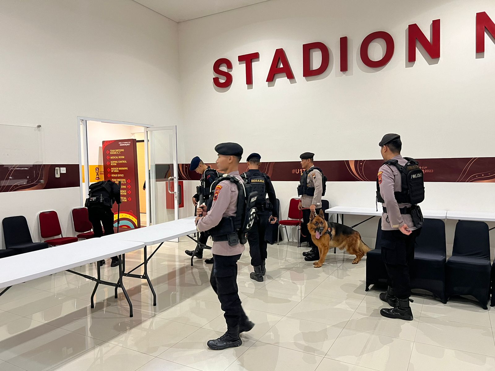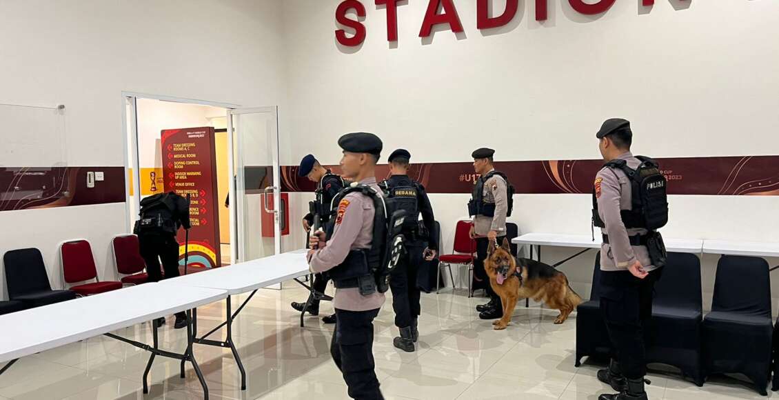 SURAKARTA,ikagawanews.id  –  Polda Jateng|Mengantisipasi ancaman bahan peledak dan benda berbahaya di venue pertandingan piala dunia FIFA U-17, Puluhan anggota Satuan gegana Brimob dibantu tim satwa melakukan melakukan sterilisasi kawasan stadion Manahan, Senin dini hari (13/11/2023)