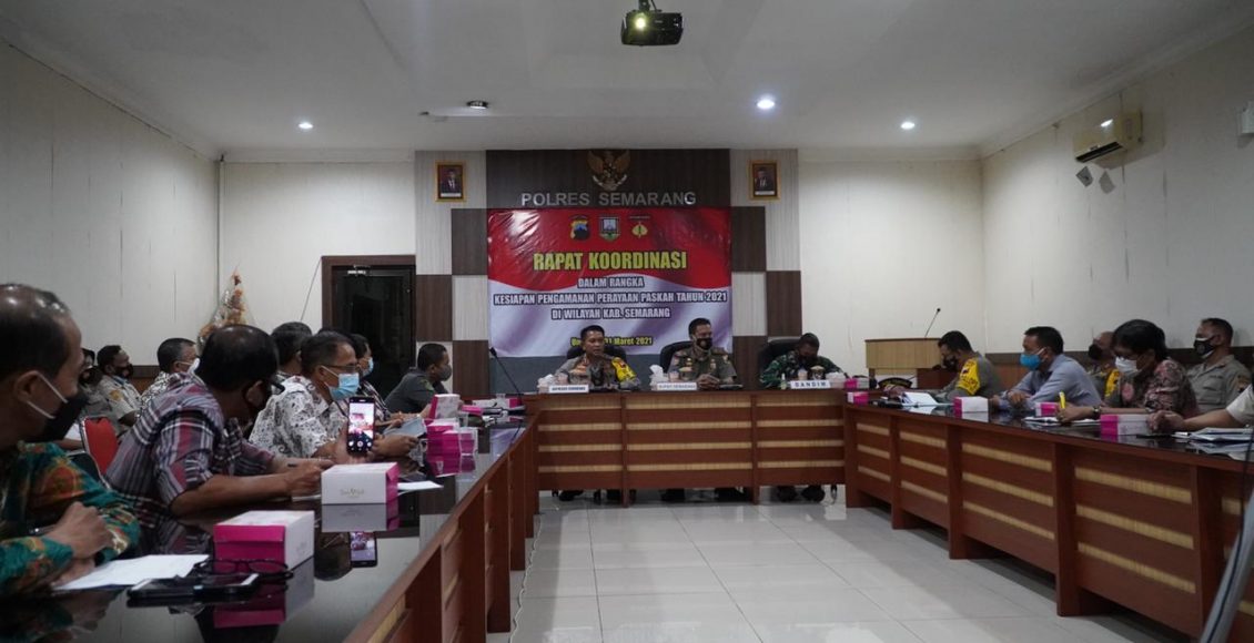 Semarang,IKAGAWANEWS.ID – Guna antisipasi gangguan Kamtibmas dan mencegah penyebaran Covid-19 pada peringatan hari Wafat Isa Almasih 2021 di wilayah Kabupaten Semarang, Polres Semarang melaksanakan rapat koordinasi lintas sektoral. Rabu (31/03/2021)