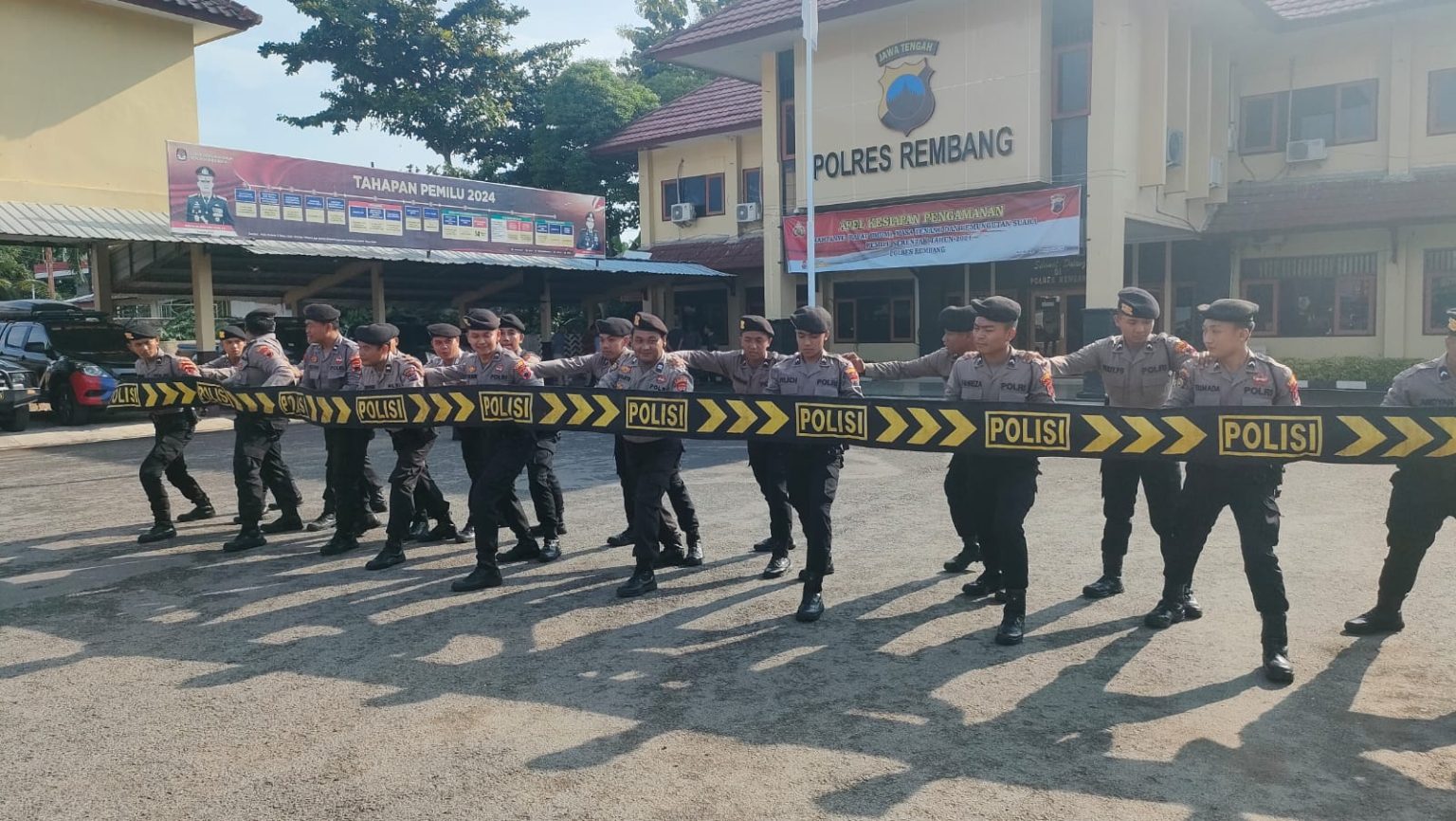 Antisipasi Kerawanan Kamtibmas Pasca Pemilu 2024, Sat Samapta Polres Rembang Gelar Latkapuan Dalmas