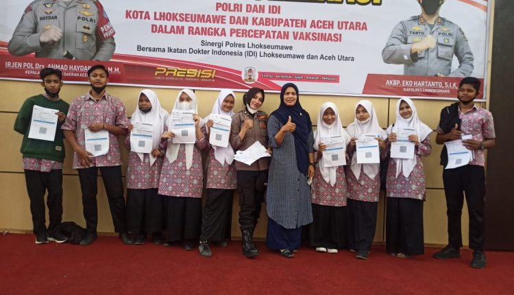 “Hari ini personel mendatangi sejumlah sekolah di wilayah hukum Polres Lhokseumawe untuk menjemput siswa yang bersedia untuk ikut vaksin. Setelah selesai, siswa ini kita antar kembali,” ujarnya.