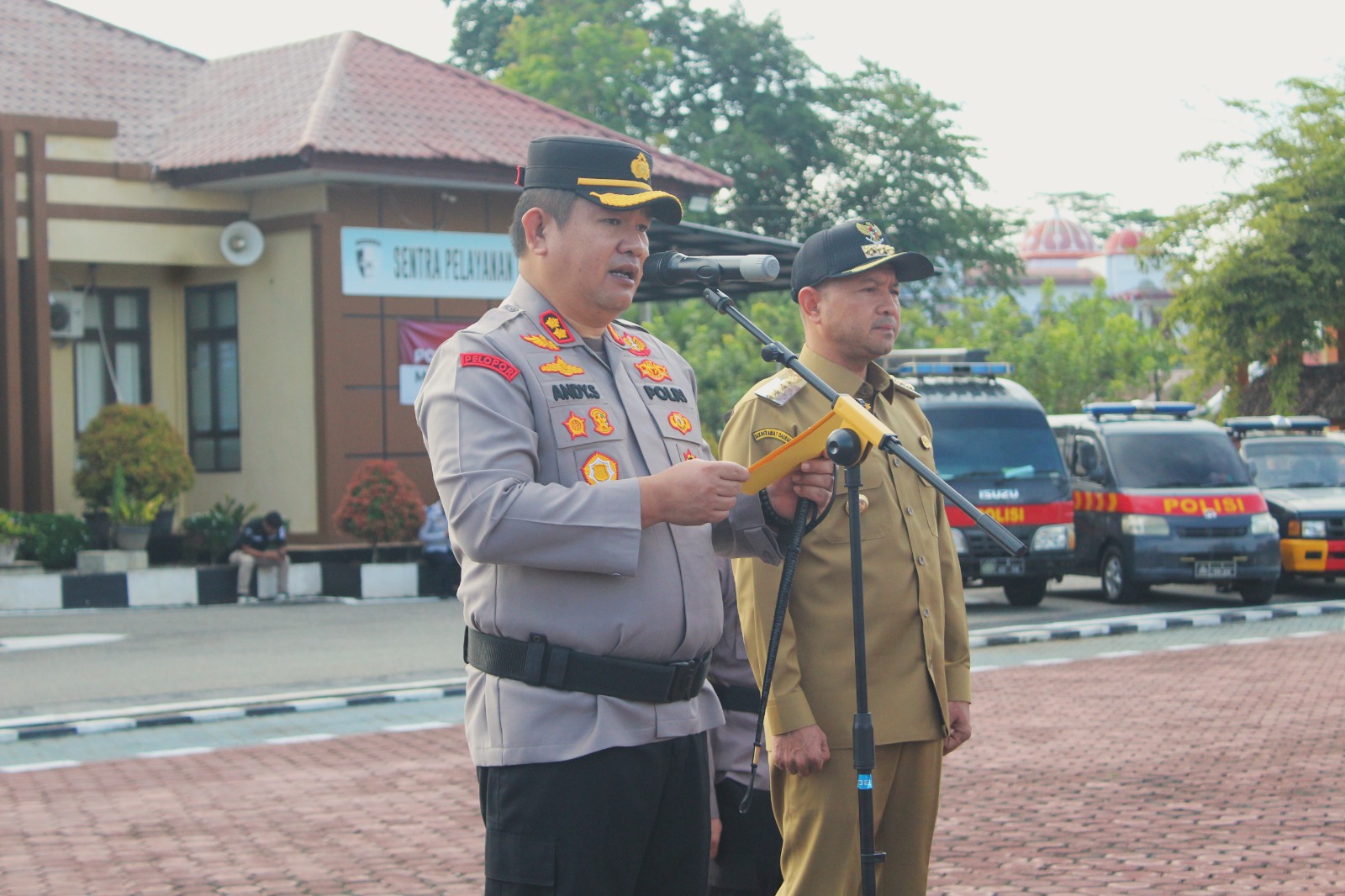 Apel tersebut dihadiri oleh unsur Forum Koordinasi Pimpinan Daerah (Forkopimda) serta tamu undangan lainnya. Sementara itu, peserta apel terdiri dari 1 pleton perwira, 1 pleton staf gabungan Polres, 1 pleton Sat Samapta, 1 pleton Sat Lantas, 1 pleton gabungan Sat Intel dan Reskrim, 1 pleton Polsek jajaran, 1 pleton TNI, 1 pleton Dinas Perhubungan, 1 pleton Satpol PP, dan 1 pleton BPBD.
