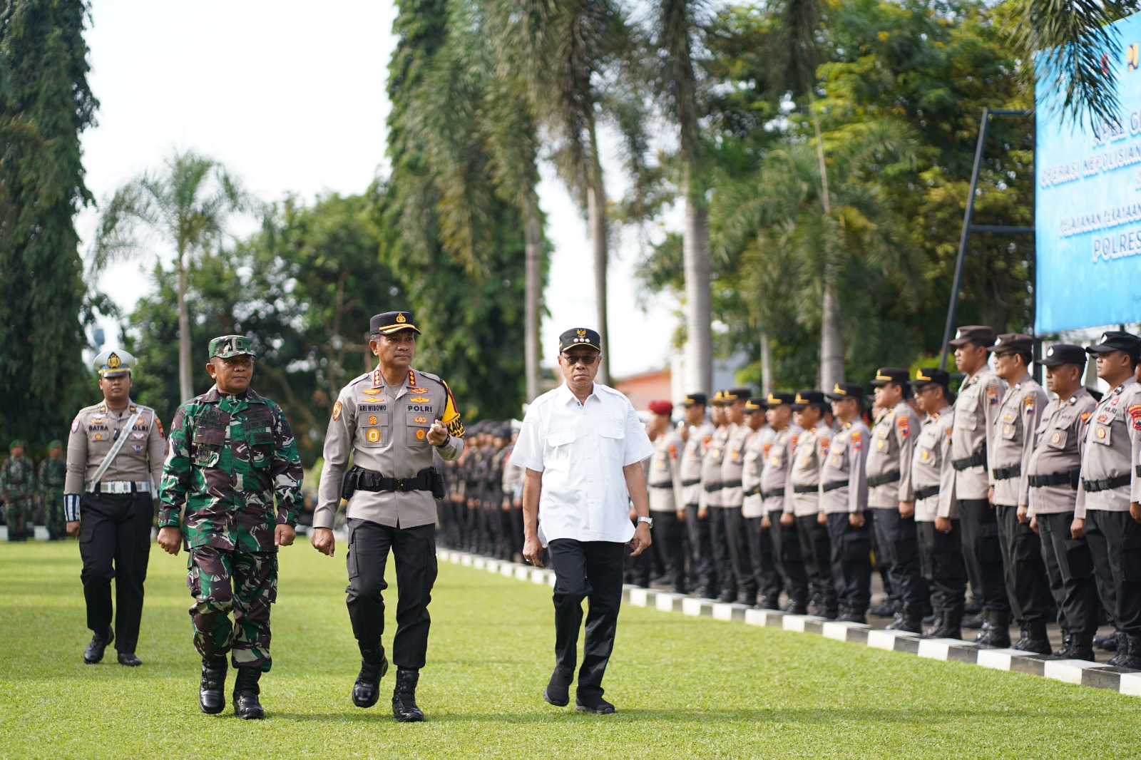 Bupati Banyumas bertindak sebagai pimpinan apel bersama Kapolresta Banyumas dan perwakilan Dandim 0701 Banyumas. Dalam kesempatan tersebut, Bupati Banyumas membacakan amanat Kapolri yang menekankan pentingnya kesiapsiagaan maksimal dalam pengamanan momentum Natal dan Tahun Baru (Nataru) yang setiap tahun diwarnai peningkatan mobilitas dan aktivitas masyarakat.