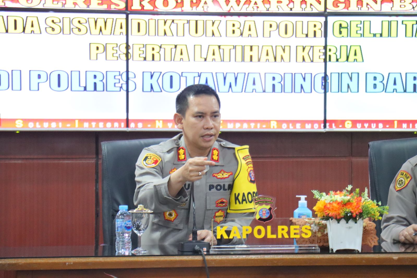 Kapolres Kotawaringin Barat AKBP BAYU WICAKSONO, S.H., S.I.K., M.Si., dalam arahannya mengucapkan terima kasih sebesar-besarnya kepada supervisor dan mentor yang telah meluangkan waktunya memberikan arahan dan pengalamannya kepada Siswa Diktuk Ba SPN Polda Kalteng. Bimbing para Siswa dengan baik karena kedepannya mereka adalah aset masa depan Polri.