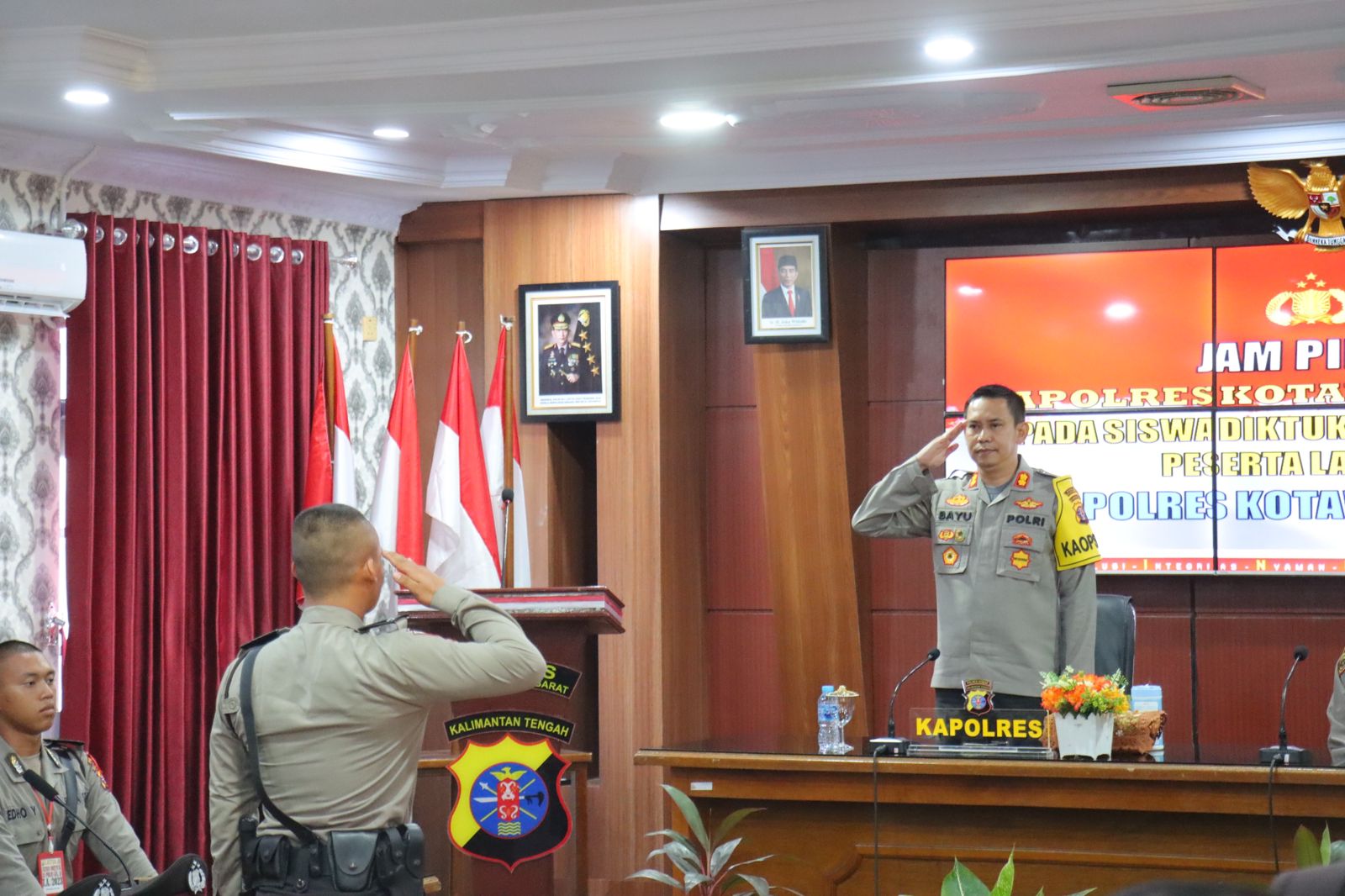 KOTAWARINGIN BARAT,ikagawanews.id – Kapolres Kotawaringin Barat AKBP Bayu Wicaksono, S.H., S.I.K., dengan didampingi Kasubbagbinkar Bag SDM AKP Isbenu Raharja memimpin pelaksanaan arahan jam pimpinan kepada Siswa Diktuk Ba SPN Polda Kalteng yang sedang melaksanakan Latihan Kerja di Polres Kotawaringin Barat,Rabu 6 Desember 2023 di Aula Satyahaprabu Polres Kotawaringin Barat.