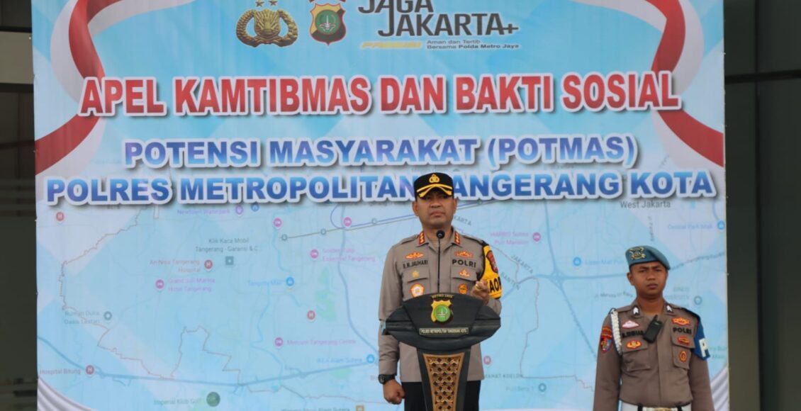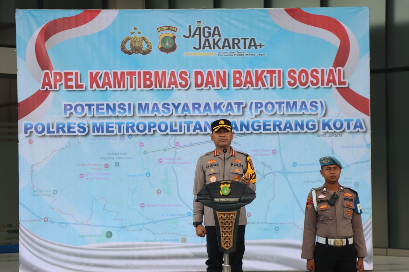 Tangerang,ikagawanews.id – Polres Metro Tangerang Kota menggelar kegiatan Apel Kamtibmas dan Bakti Sosial dalam rangka Potensi Masyarakat (POTMAS) yang berlangsung di Lapangan Apel Mako Polres Metro Tangerang Kota, Rabu (10/12/2025) pukul 09.00 WIB. Kegiatan ini dipimpin langsung oleh Kapolres Metro Tangerang Kota, Kombes Pol Dr. Raden Muhammad Jauhari, S.H., S.I.K., M.Si.