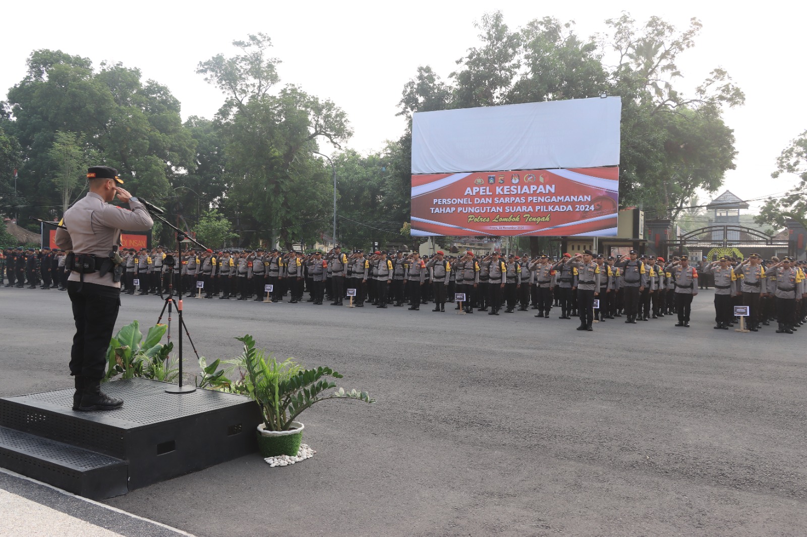 Apel tersebut dipimpin langsung Kapolres Lombok Tengah AKBP Iwan Hidayat, SIK di Lapangan Mapolres, Senin (25/11), dihadiri langsung Forkopimda, Para PJU, Kapolsek Jajaran serta seluruh personel TNI-Polri yang terlibat dalam pengamanan.