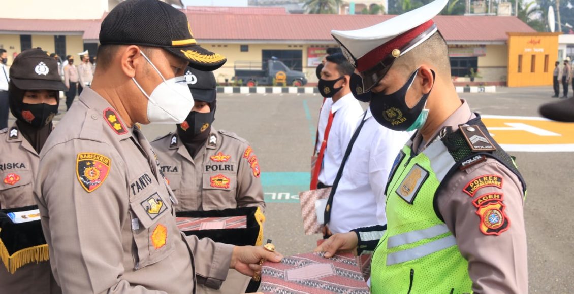 LHOKSEUMAWE,IKAGAWANEWS.ID – Kapolres Lhokseumawe AKBP Eko Hartanto, S.IK, MH memberikan penghargaan kepada 41 personil yang berlangsung di Mapolres Lhokseumawe, senin (28/09/2020) pagi.