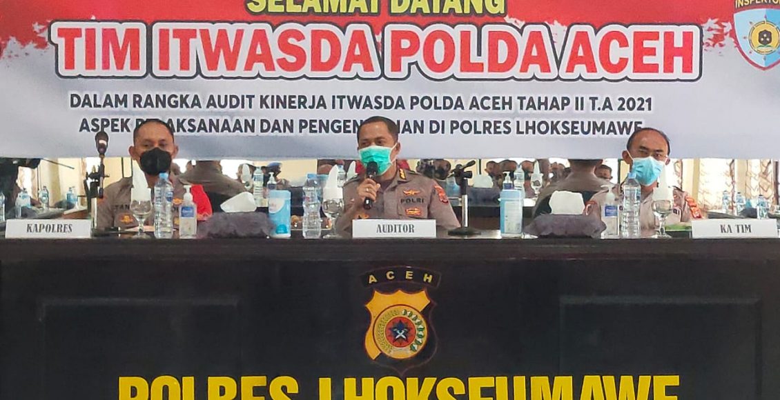 LHOKSEUMAWE,ikagawanews.id – Kombes Pol Rickson PM Situmorang pimpin Tim itwaspda Polda Aceh dalam rangka audit kinerja Itwasda Polda Aceh tahap II T.A 2021 aspek pelaksanaan dan pengendalian yang berlangsung di Aula Rupatama Wicaksana Laghawa Polres Lhokseumawe, Jum’at (12/11/2021) pagi.