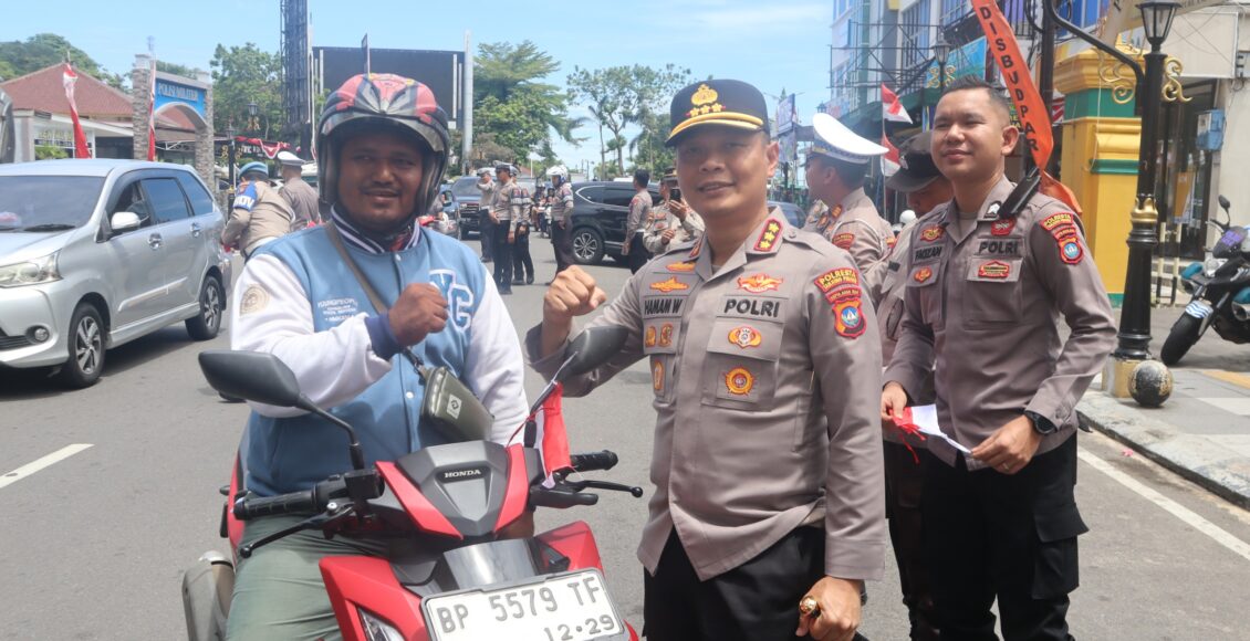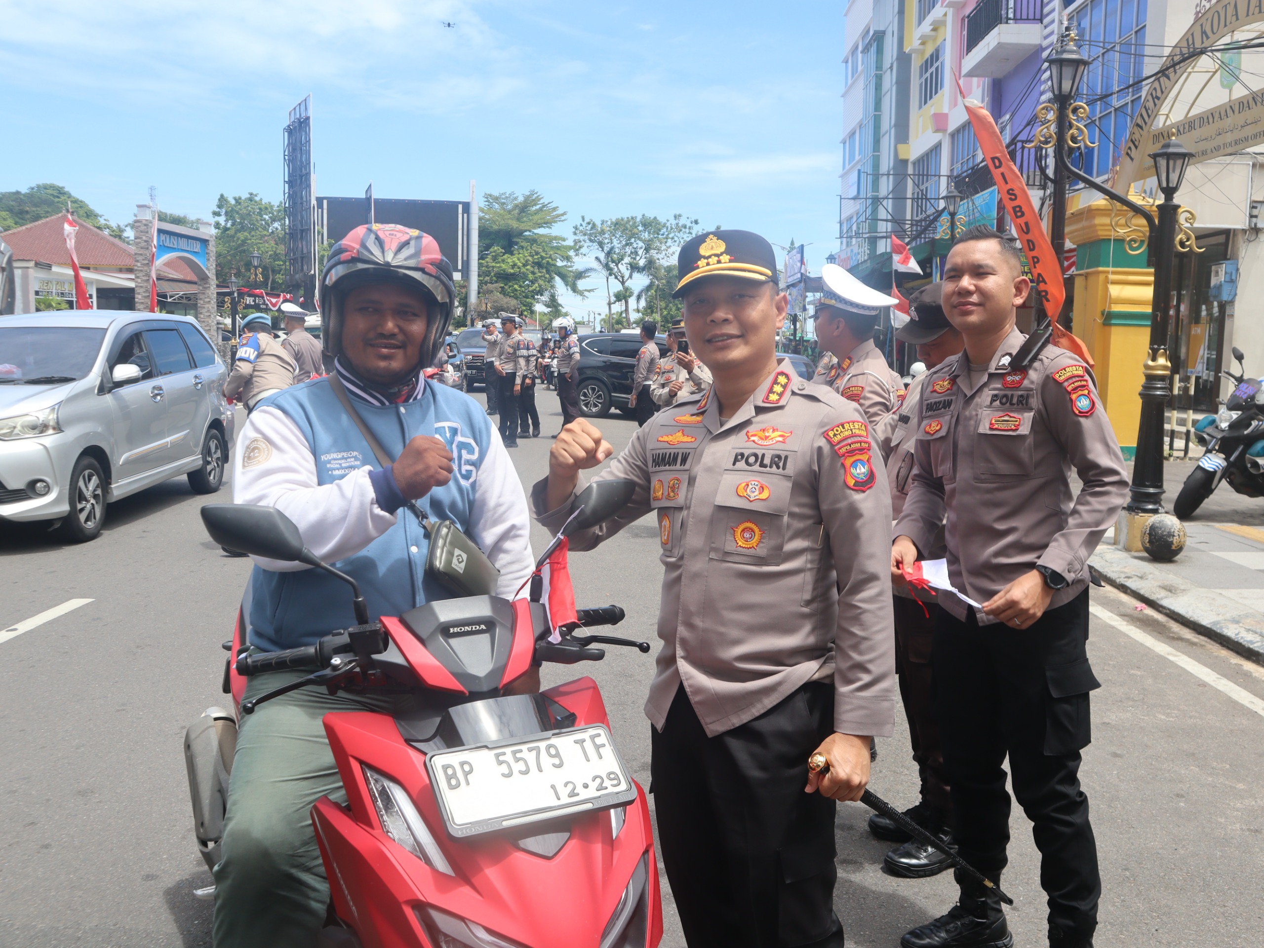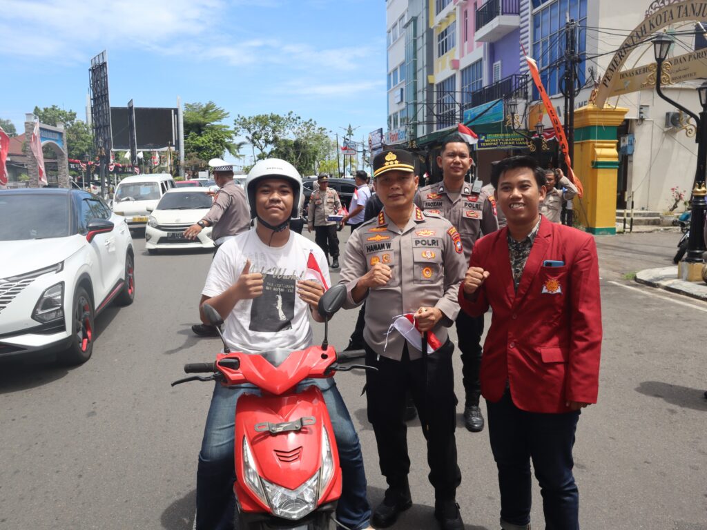 Kapolresta Tanjungpinang Kombes Pol. Hamam Wahyudi, S.H., S.I.K., M.H mengatakan, dalam kegiatan ini Polresta Tanjungpinang membagikan sebanyak kurang lebih 300 bendera merah putih kepada pengendara sepeda motor dan mobil yang melintas.