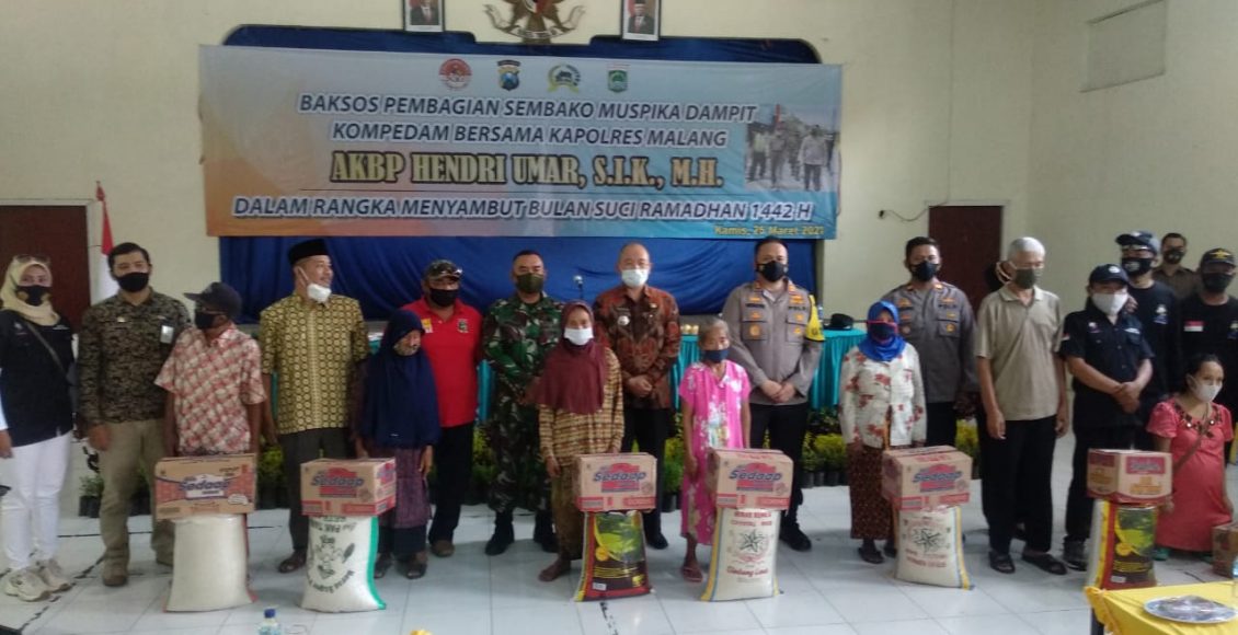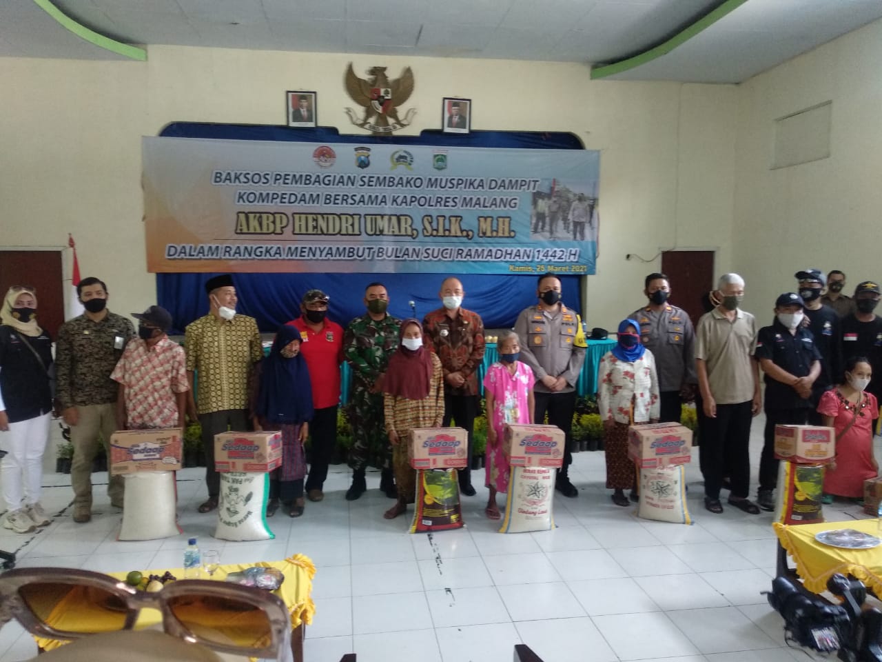Malang, IKAGAWANEWS.ID – Kepala Kepolisian Resort (Kapolres) Malang AKBP Hendri Umar S.I.K MH menghadiri kegiatan Baksos pembagian Sembako oleh Muspika Dampit dan Komunitas Peduli Dampit (KOPEDAM) dalam rangka menyambut Bulan Suci Ramadhan 1442 H, pada hari Kamis (25/03/2021).