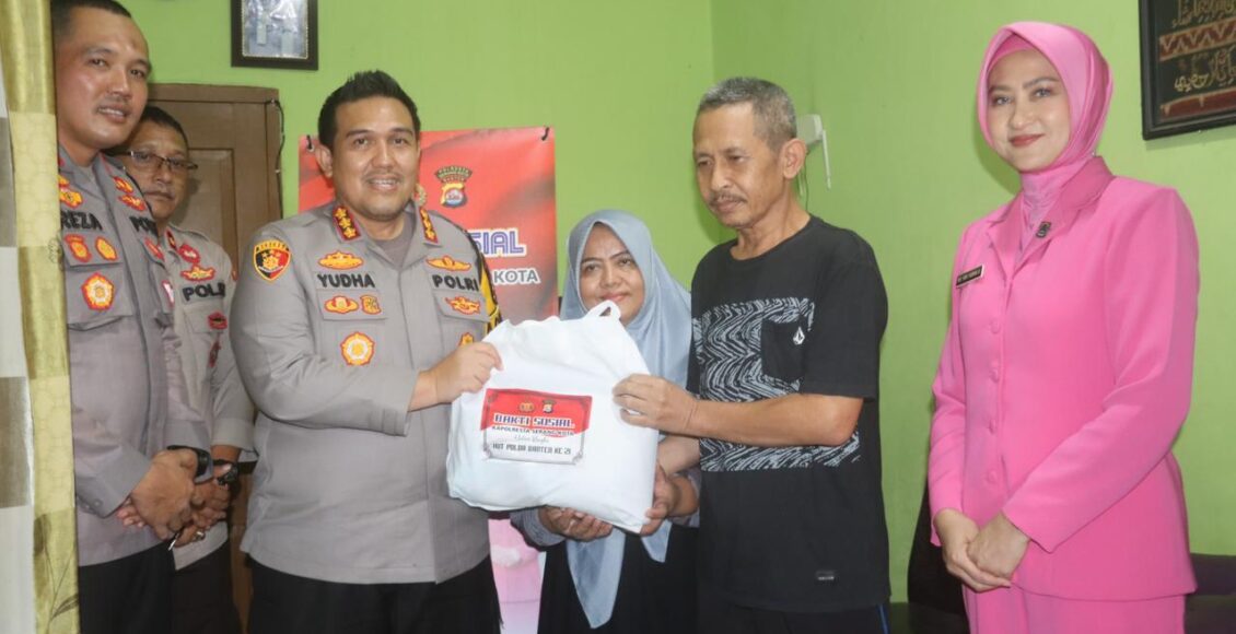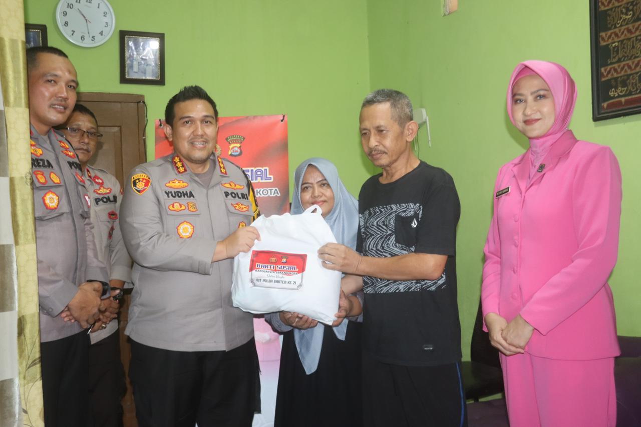 Kapolresta Serkot beserta Ibu Ketua Bhayangkari memberikan bingkisan dan bantuan sebagai bentuk rasa sosial dan dukungan kepada anggota Polri yang sakit dan Warakawuri.