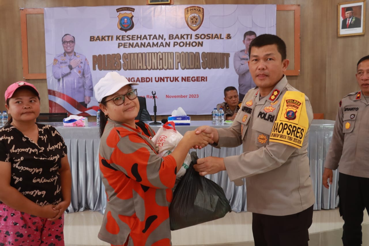 Simalungun,ikagawanews.id – Polres Simalungun Polda Sumatera Utara menggelar kegiatan bakti sosial dan penanaman pohon dalam rangka Rapat Koordinasi (RAKORBIN) Sumber Daya Manusia (SDM) dan Pegawai Negeri Sipil (PNS) POLRI 2023. Kegiatan ini dipimpin langsung oleh Kapolres Simalungun AKBP Ronald F.C Sipayung, S.H., S.I.K., M.H., pada hari Sabtu, 4 November 2023.