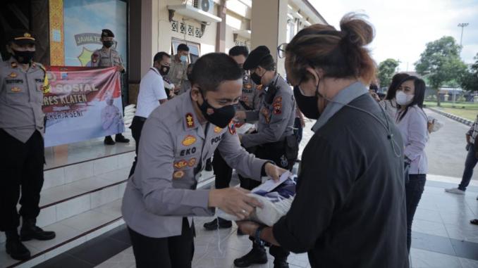Kapolres Klaten AKBP Eko Prasetyo, S.H., S.I.K., M.H., melalui Kasi Humas Iptu Abdillah, S.H., M.H., mengatakan bahwa kegiatan bakti sosial ini menyasar para pekerja seni yang terdampak secara ekonomi akibat pembatasan aktivitas masyarakat terkait Covid-19. Kegiatan bakti sosial kali ini dilaksanakan di Polres Klaten.