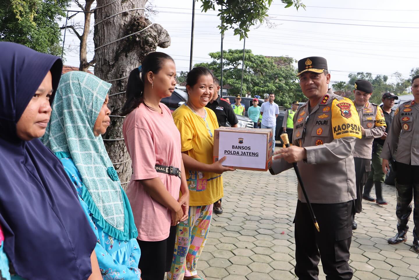 Dalam kesempatan tersebut, Kapolda Jateng menyempatkan diri untuk menyapa 170 orang pengungsi akibat banjir yang terjadi di Kecamatan Grobogan.