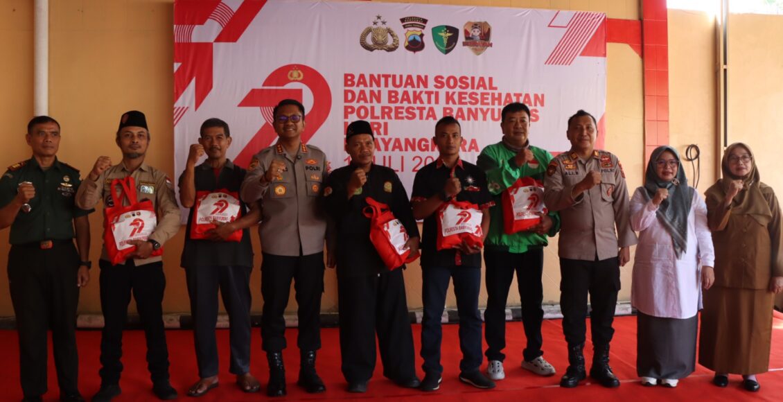 Kapolresta Banyumas Kombes Pol Dr. Ari Wibowo, S.I.K., M.H., menyampaikan ditahun ini, di HUT Bhayangkara Ke 79 Polri mengambil tema besar yaitu Polri Untuk Masyarakat, disinilah kami Polresta Banyumas bersama instansi terkait melaksanakan kegiatan Bantuan Sosial dan Bakti Kesehatan.