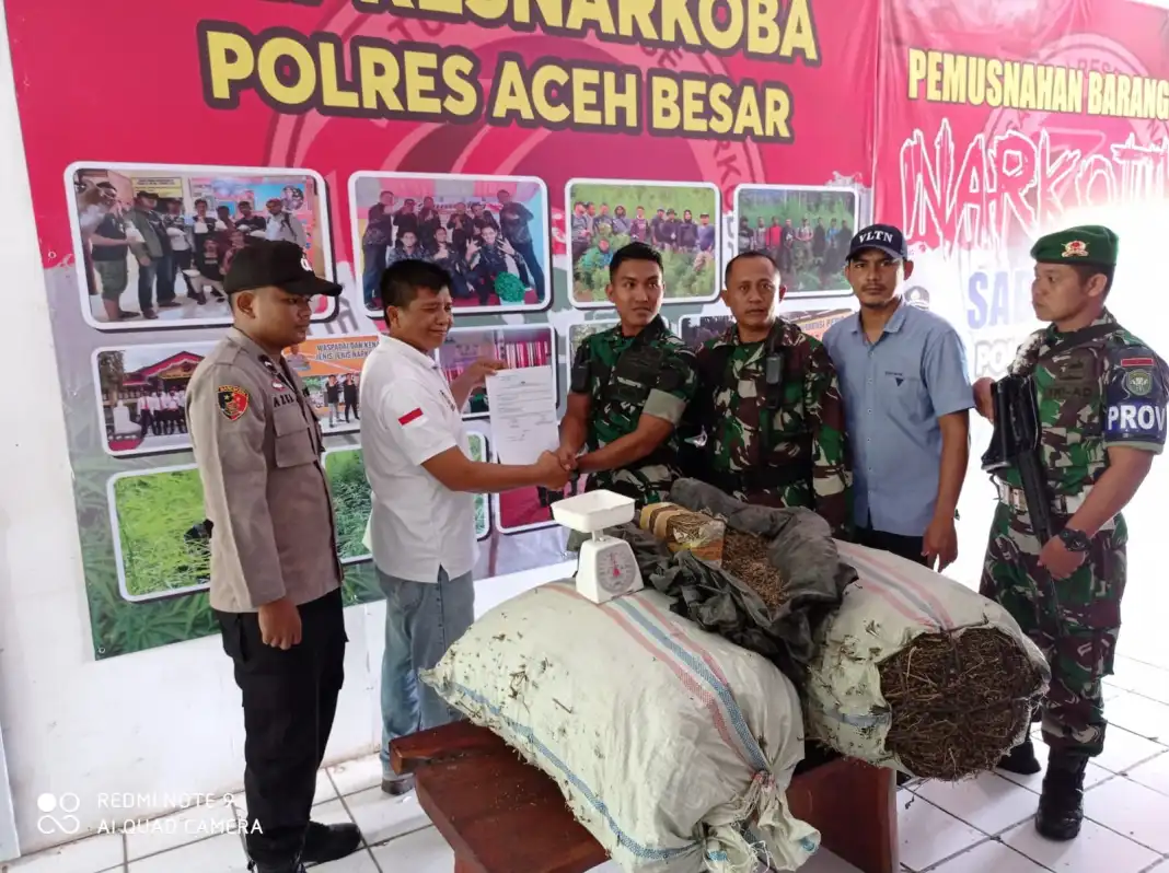 Keseluruhan barang bukti yang diserahkan itu diterima KBO Satuan Narkoba Polres Aceh Besar, Ipda Samino,” ungkap mantan Kapolres Gayo Lues ini.