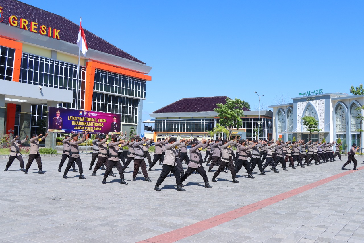 Guna meningkatkan kompetensi Bhabinkamtibmas, Polres Gresik yang dimotori oleh Satbinmas selaku koordinator dan pembina fungsi menggelar pelatihan peningkatan kemampuan (Latkatpuan) borgol, tongkat dan Pertolongan Pertama Gawat Darurat (PPGD).